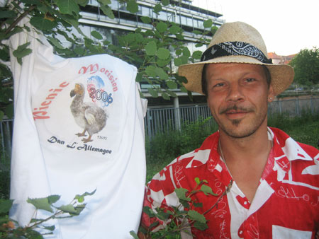 ![]() Der DODO Trotz seiner langen Abwesenheit (seit 1693) ist er das Wappentier von Mauritius und im Geiste jeden Mauritier/in ständig präsent. Laut Berichten wurde das letzte dieser friedfertigen Tiere von einem spanischen Conquistador erschlagen. Der Mythos von Frieden hat sich jedoch im Herzen eines jeden Mauritier/in manifestiert. Der DODO lebt! Diese Philosophie hat auch den "Hemingway von Mauritius" - Jürgen Drössler beflügelt. Deshalb haben Organisateur Jean Clair Giroffle und Jürgen Drössler den DODO als Logo für das Picnic Morisien 2006 gewählt. Das Logo (siehe T-Shirt) war auf der Oberbekleidung der Organisation zu sehen sowie auf den Hinweisschildern für die Anreisenden. |